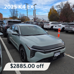 - Up to $6,400+ in savings available — on select demonstrator, service loaner, and test drive vehicles including the EV9, Sportage, Sorento, Niro, EV6, Seltos, and K4.